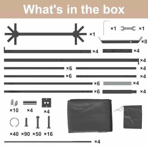 Le montage, bien que potentiel pour une personne seule, est amĆ©liorĆ© par des Ć©lĆ©ments bien Ć©tiquetĆ©s et des instructions claires, permettant de terminer l’installation en quelques heures. Toutefois, certains utilisateurs ont notĆ© la fragilitĆ© perƧue de la toile, ce qui incite Ć renforcer l’ensemble en cas de vent fort.